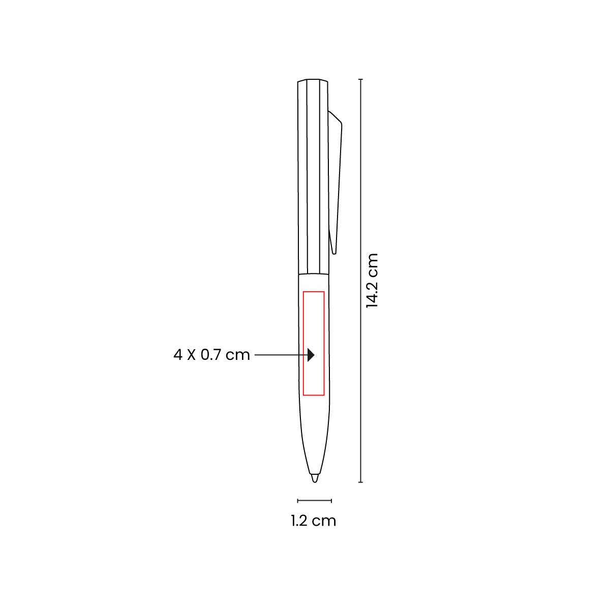 mecanismo twist. forma hexagonal en la parte superior del bolígrafo. incluye estuche.