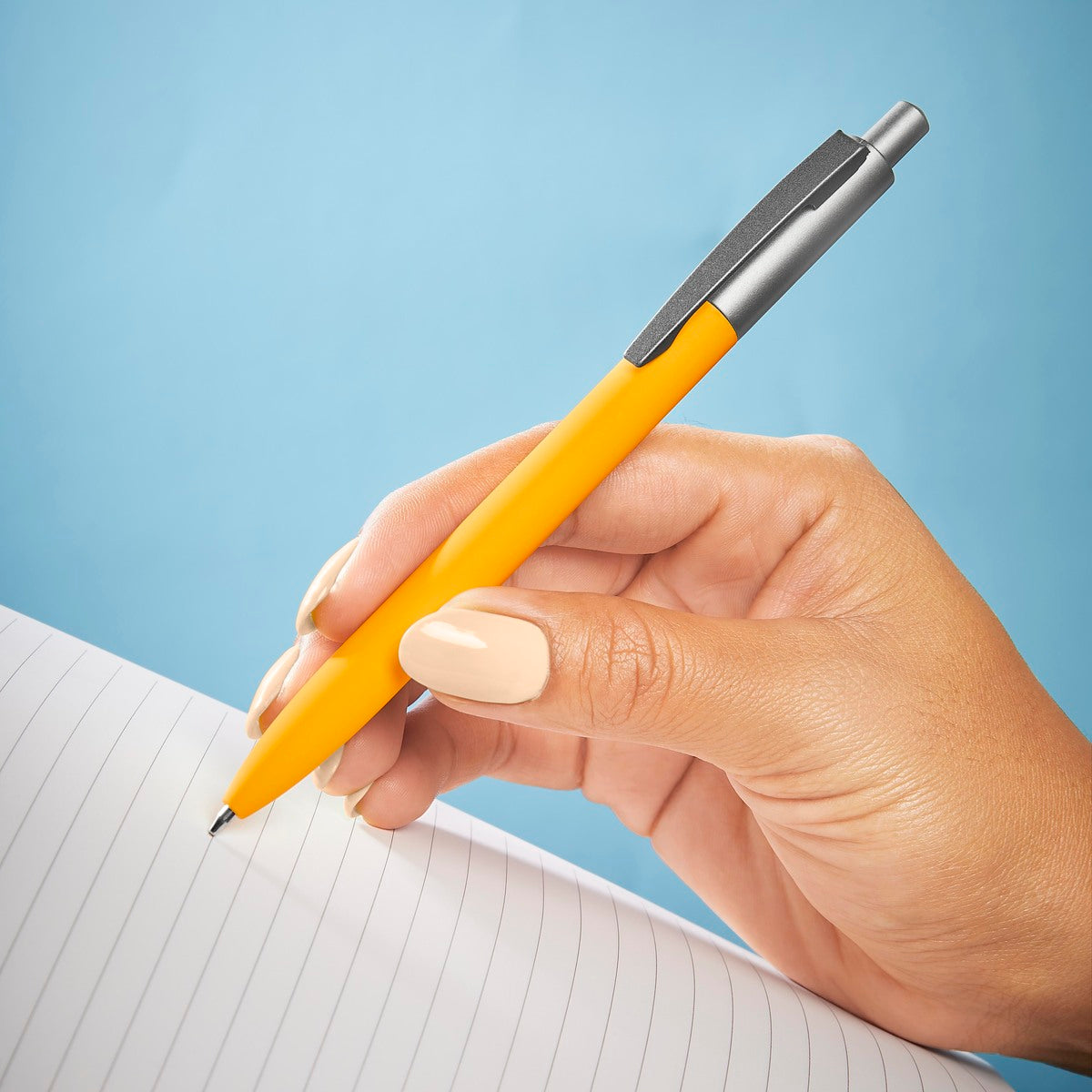 bolígrafo metálico con terminado mate. mecanismo pulsador. incluye estuche de color a tono con el bolígrafo.