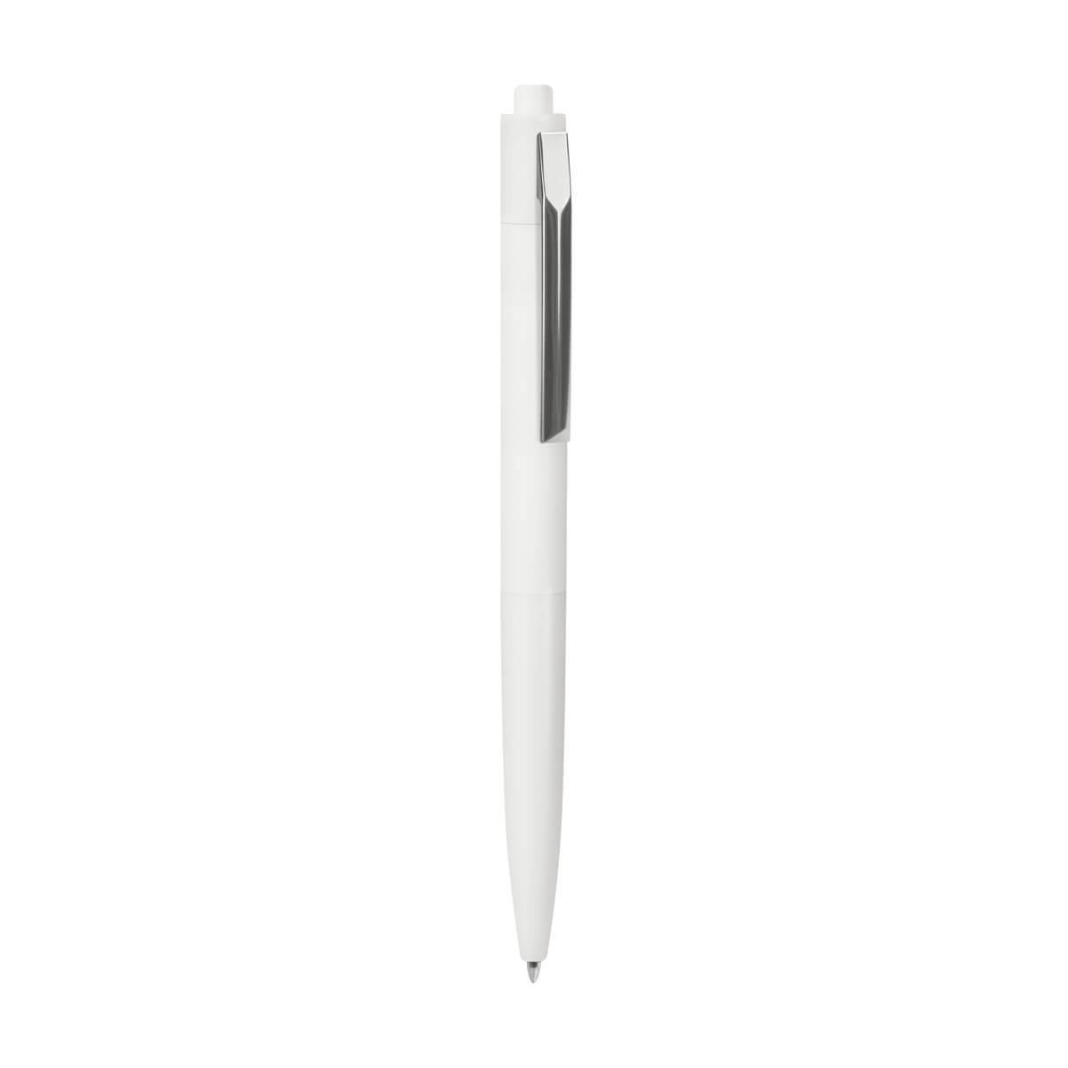 bolígrafo híbrido: mitad metálica y mitad de plástico. acabado suave al tacto y mecanismo pulsador.