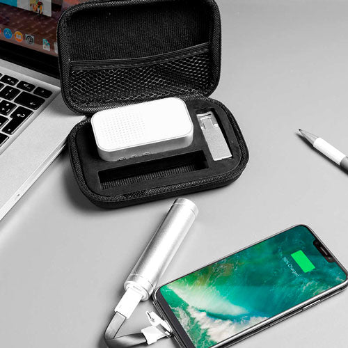 incluye bocina bluetooth, batería auxiliar de 2,600 mah, cable cargador y de transferencia de datos compatible con micro usb, 8 pin y tipo c, soporte para smartphone y estuche. este producto por ser últimas piezas puede presentar alguna variación, no se aceptan devoluciones.