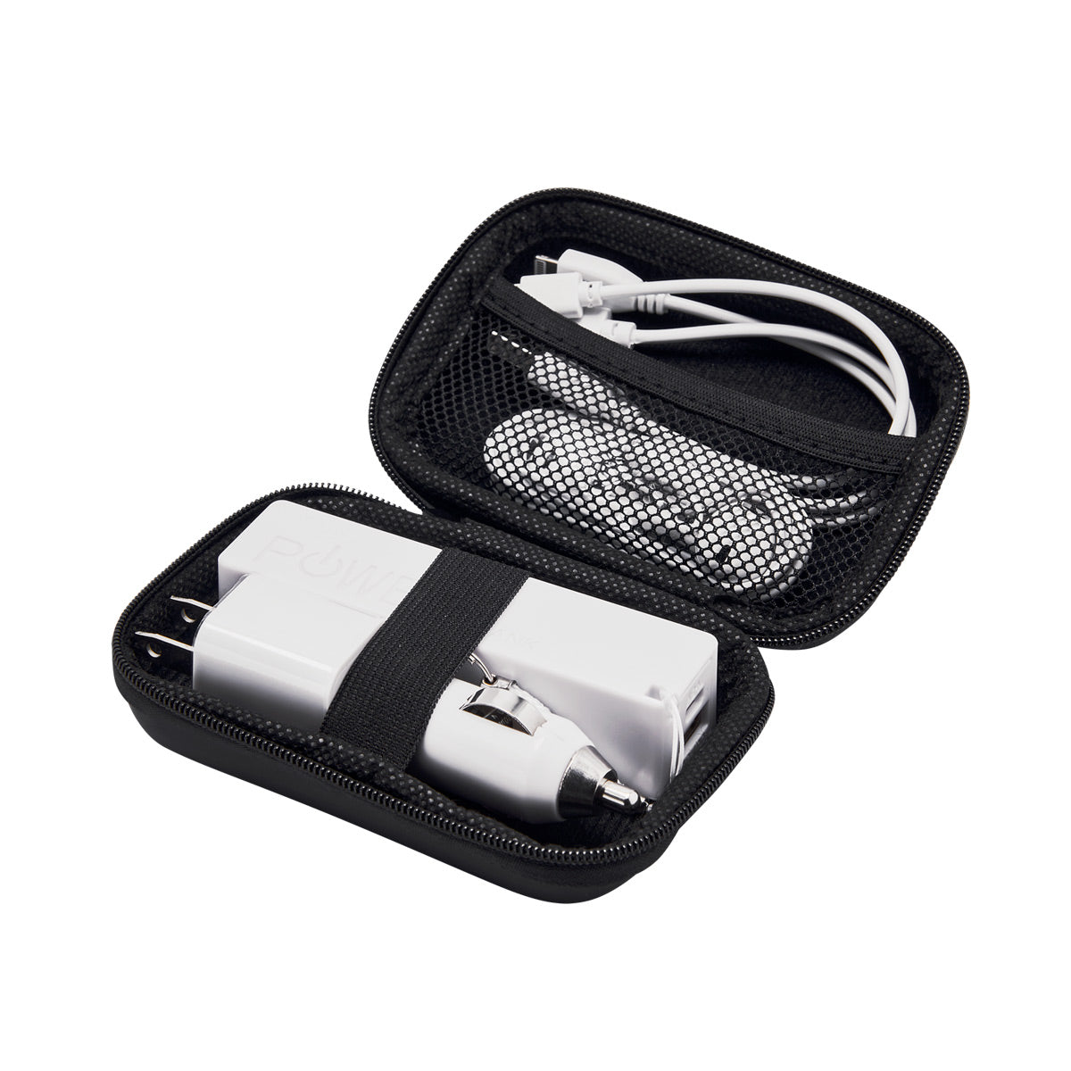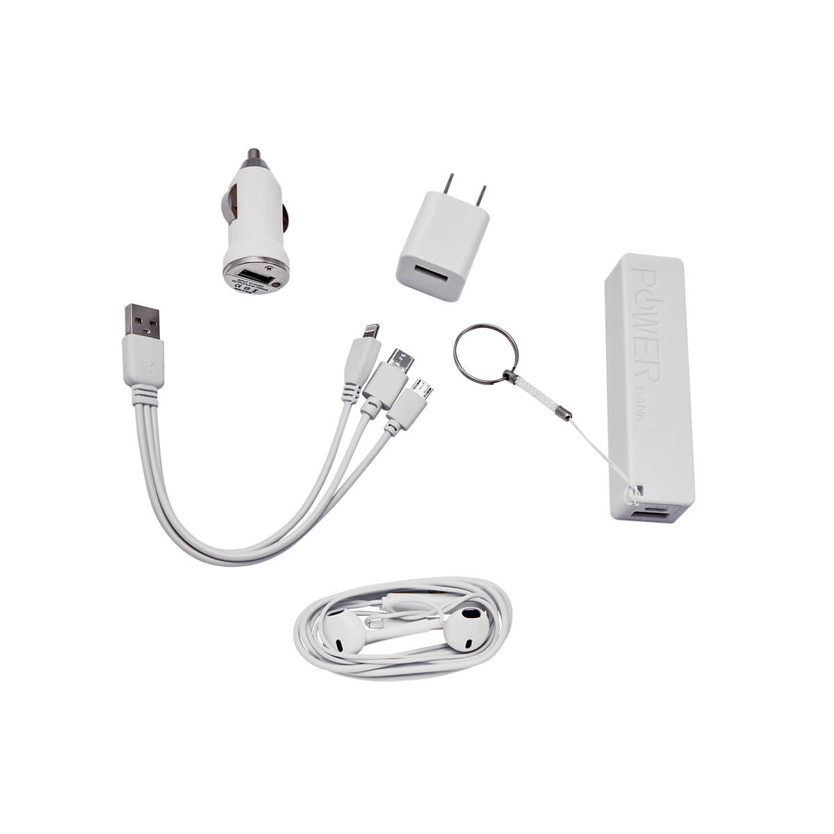 incluye batería auxiliar de 2,600 mah, cargador para automóvil, cargador de pared, audífonos, cable cargador usb 3-en-1 (micro usb, tipo c y lightning) y estuche.
