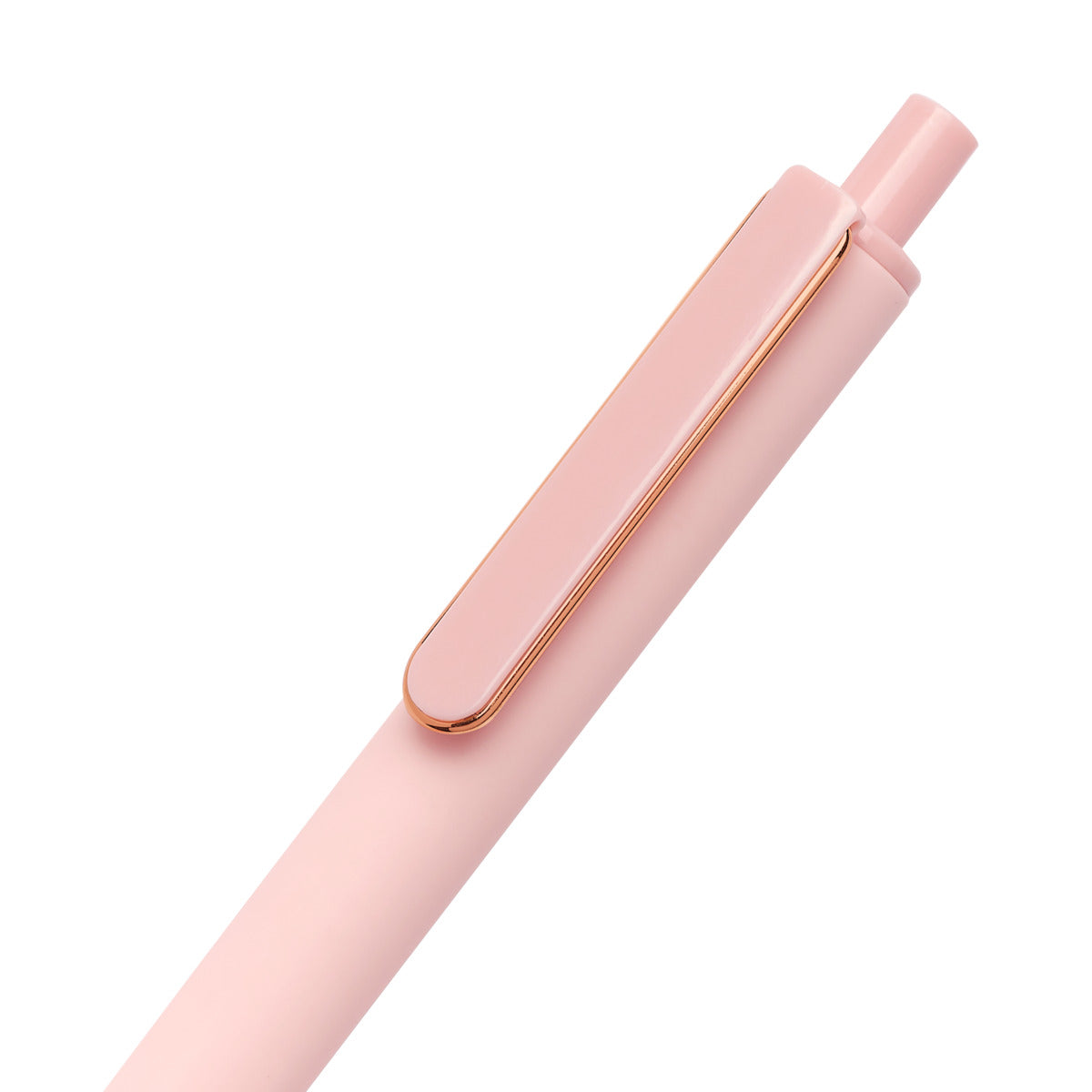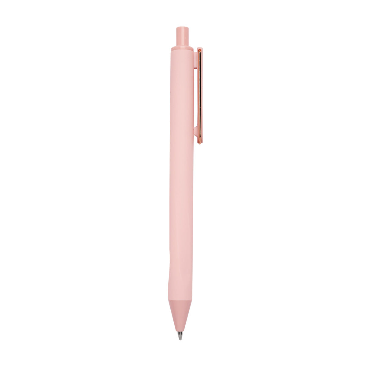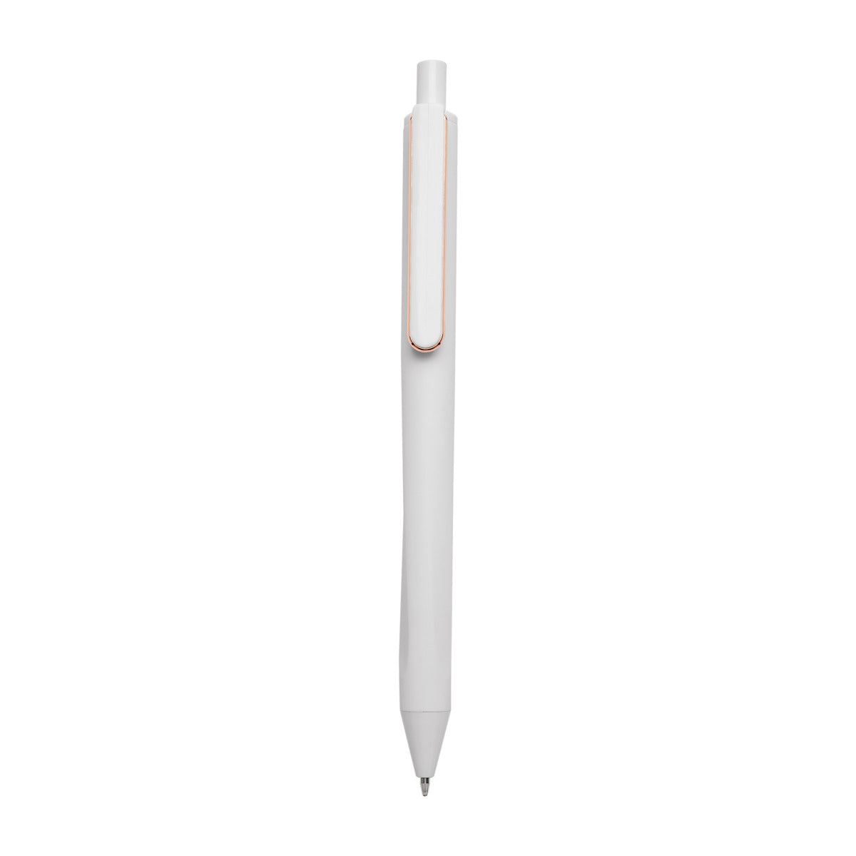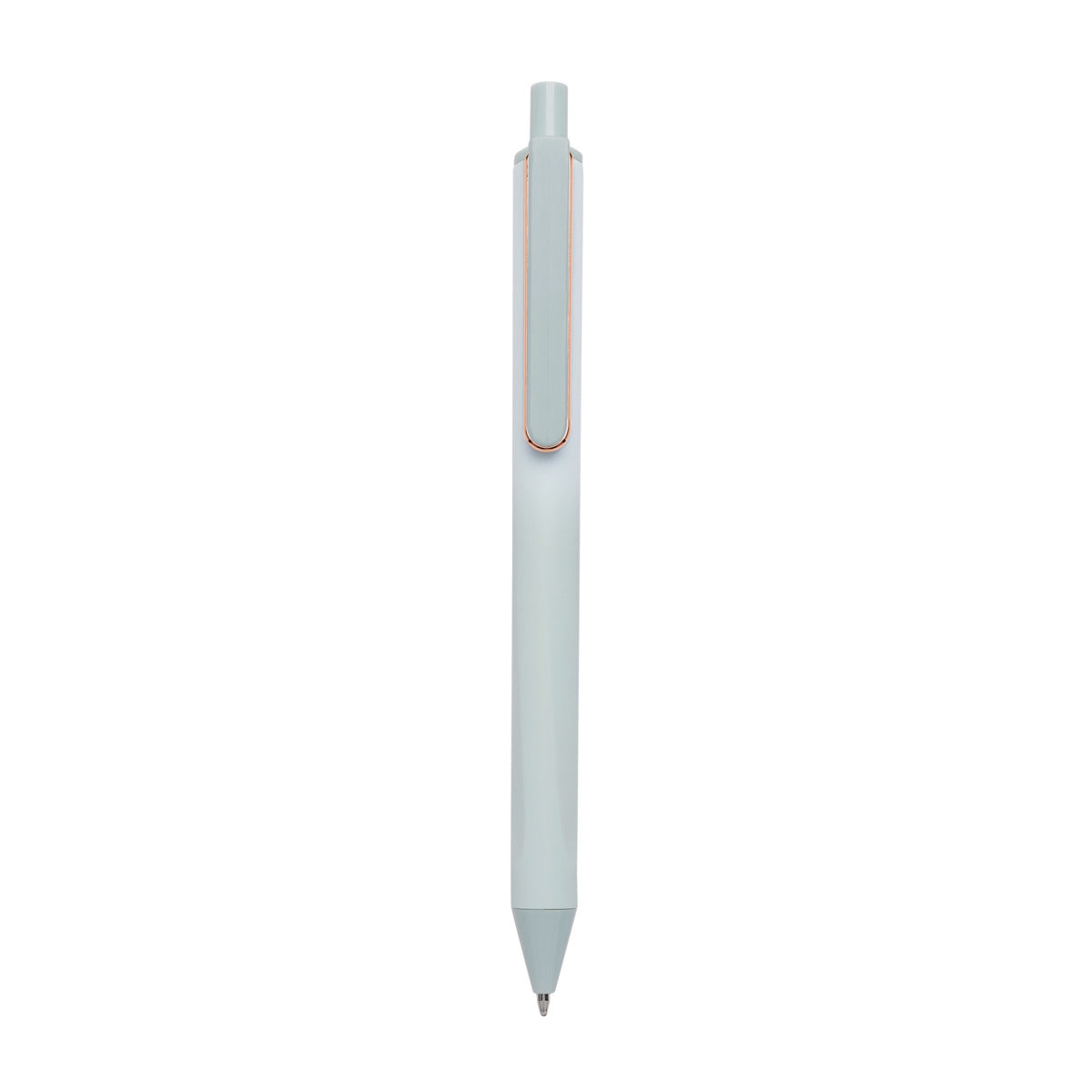 bolígrafo con terminado tipo rubber. mecanismo pulsador. su diseño inferior permite un mejor agarre.