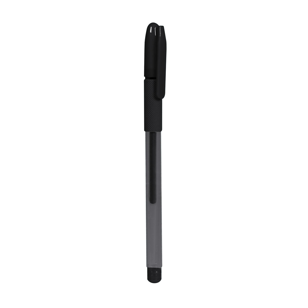 bolígrafo con tapón y grip antiderrapante.