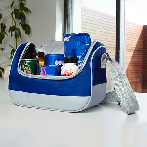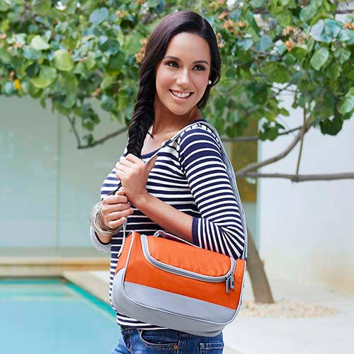 interior plastificado. bolsa principal con cierre. asa de agarre superior y correa ajustable. capacidad para 6 latas.