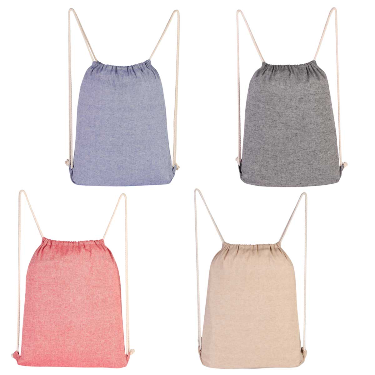 bolsa-mochila con tirantes de cordón y cerrado de jareta.