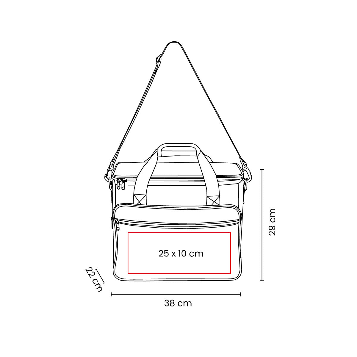 interior plastificado. bolsa principal y bolsas frontales con cierre. asas con agarre de velcro y correa ajustable. capacidad para 20 latas.