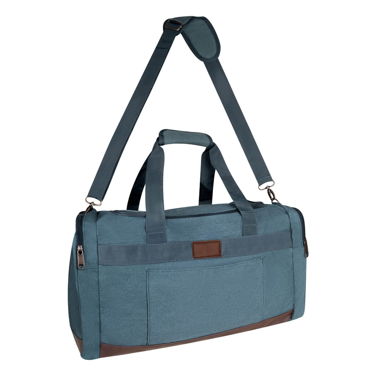 bolsa principal y bolsas laterales con cierre, bolsillo frontal, asas y correa para hombro, ajustable y removible.