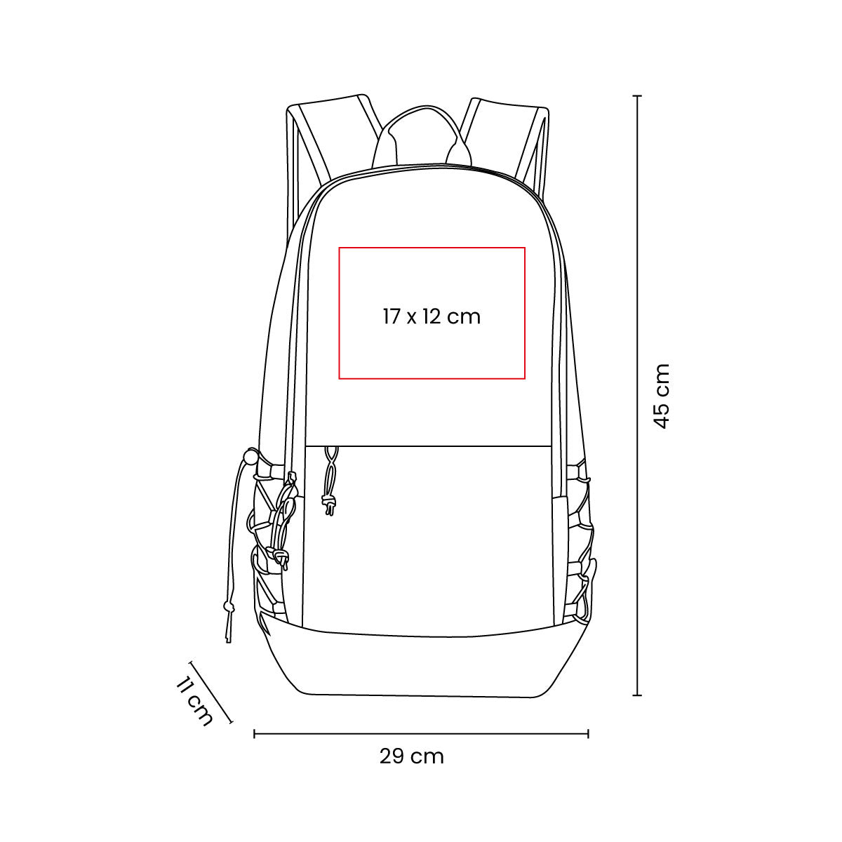 bolsa principal y frontal con cierre. bolsas laterales de elástico con jareta. tirantes ajustables con tira reflejante. incluye asa de agarre superior. con capacidad para laptop de hasta 16".