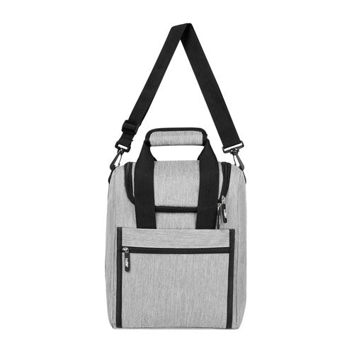 interior metalizado plastificado. bolsa principal y frontal con cierre. asas y correa ajustable.