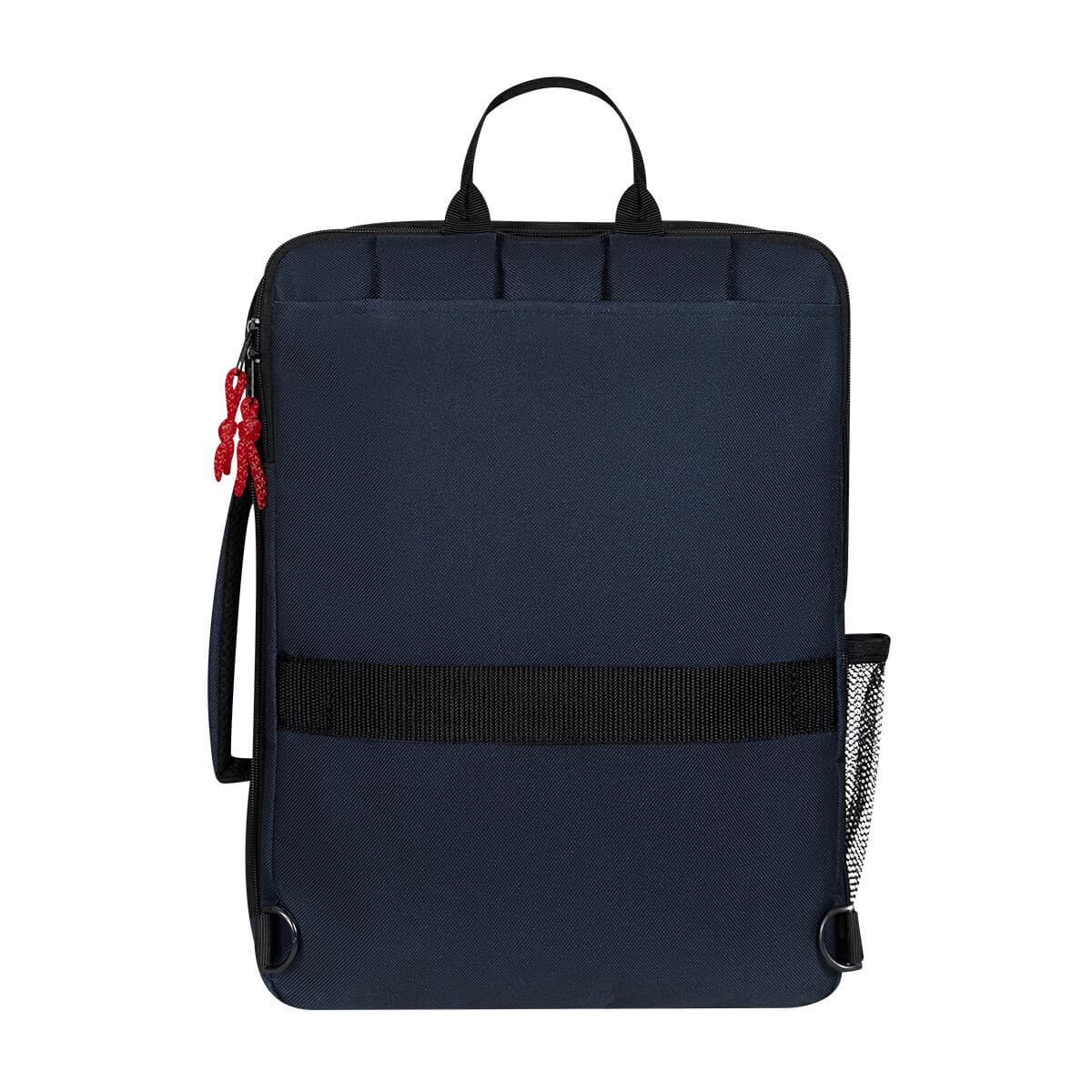 mochila tipo portafolio. su bolsillo principal se puede expandir por medio de un cierre, lo que le permite adaptarse a diferentes medidas y necesidades. cuenta con un bolsillo adicional para laptop. en la parte frontal agrega un bolsillo vertical con cierre y otro horizontal para organizar de mejor manera tus objetos esenciales. en la parte de atrás cuenta con un compartimento que te permite guardar las asas para hombro y gracias a su asa acojinada puedes utilizarlo como portafolio. incluye banda para colocar en trolley. soporta laptop de hasta 13".