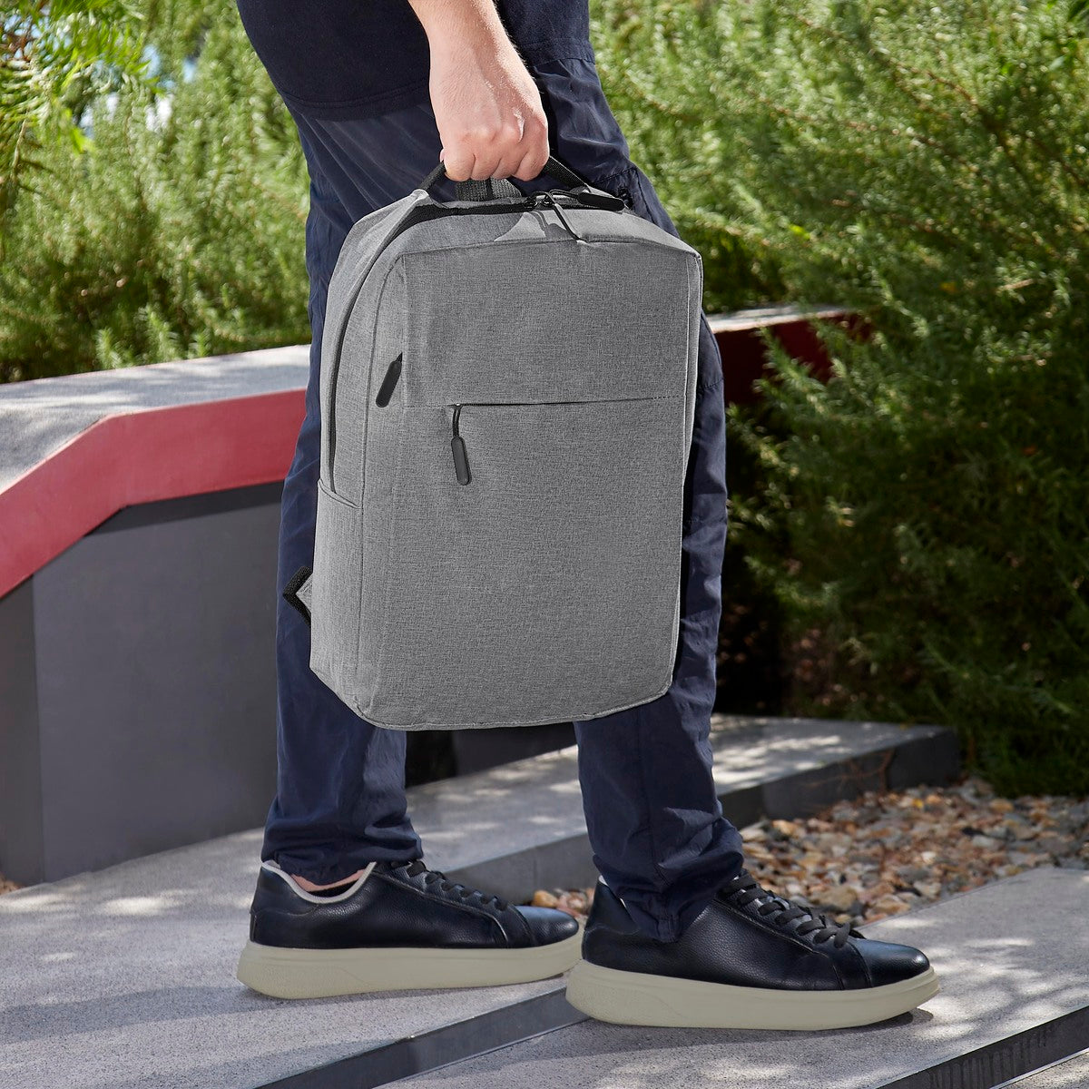 mochila estilo casual. bolsa principal con cierre, incluye compartimiento para laptop de hasta 15" y bolsillos organizadores para mantener tus objetos pequeños en orden y con fácil acceso. su diseño agrega un bolsillo frontal con cierre vertical, ideal para llevar libretas pequeñas o accesorios indispensables. además, cuenta con otro bolsillo frontal con cierre. en la parte posterior, incluye banda para colocar en trolley.