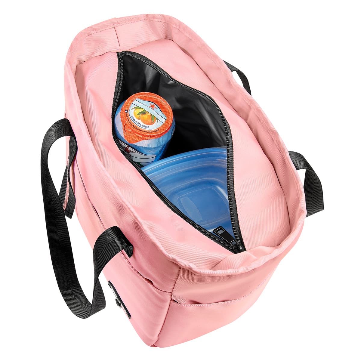hielera con interior plastificado impermeable. bolsa principal con cierre, un bolsillo frontal y dos bolsillos laterales. su práctico diseño le brinda comodidad y practicidad para almacenar alimentos y bebidas. capacidad de 12 latas.
