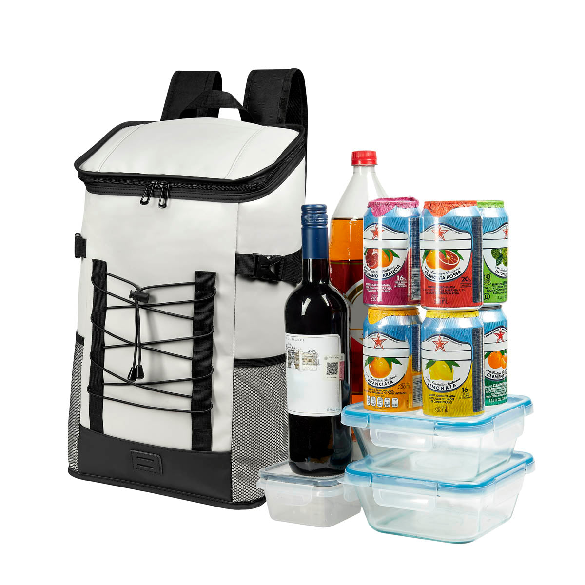 hielera con función de mochila, con interior plastificado impermeable. espacioso compartimento principal con cierre, pequeño bolsillo con cierre en la parte superior y 2 bolsillos laterales de red. al frente, incluye elástico ajustable para llevar accesorios adicionales. en la parte posterior cuenta con asas de mochila ajustables, espalda acojinada para mayor comodidad y banda que facilita su transporte en trolley. ideal para una tarde en la playa, pesca o senderismo. capacidad para 24 latas.