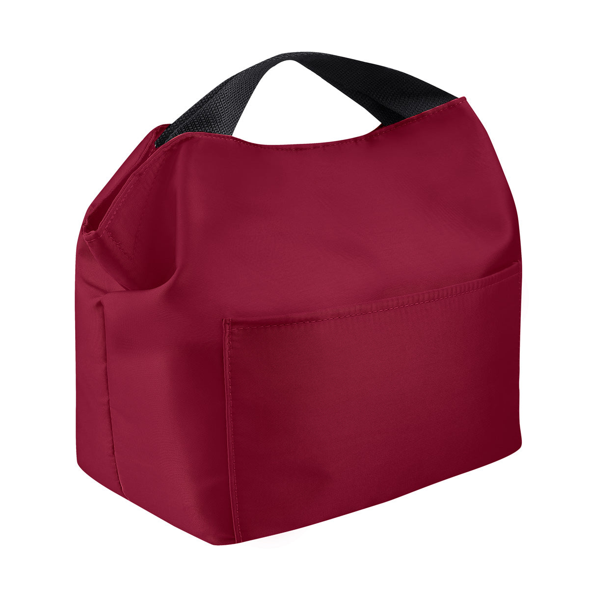 lonchera con interior plastificado. compartimento principal con cierre de velcro y un bolsillo frontal para llevar snacks adicionales o pequeños utensilios. su diseño, la convierte en un modelo muy cómodo para almacenar tus alimentos y bebidas. capacidad para 8 latas.