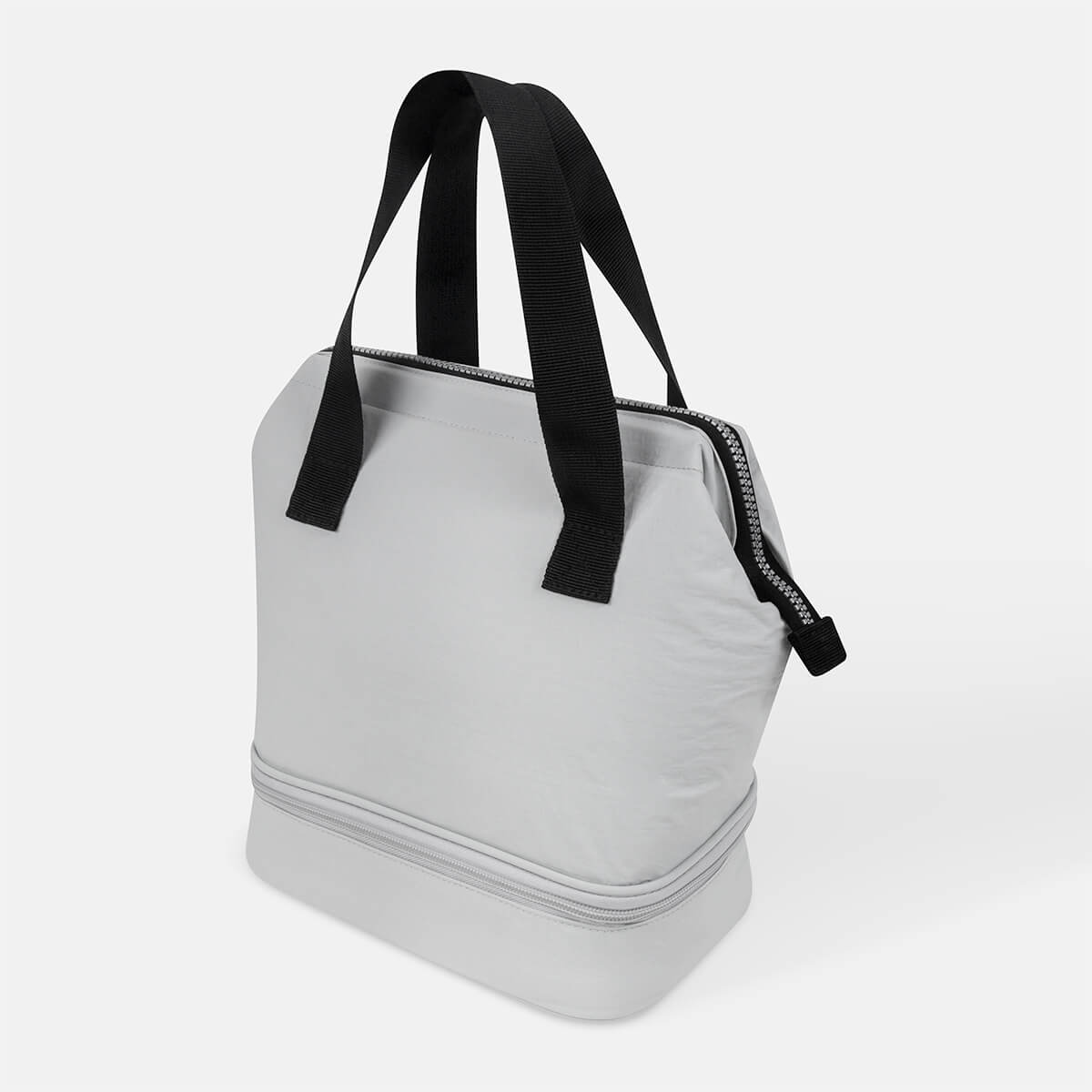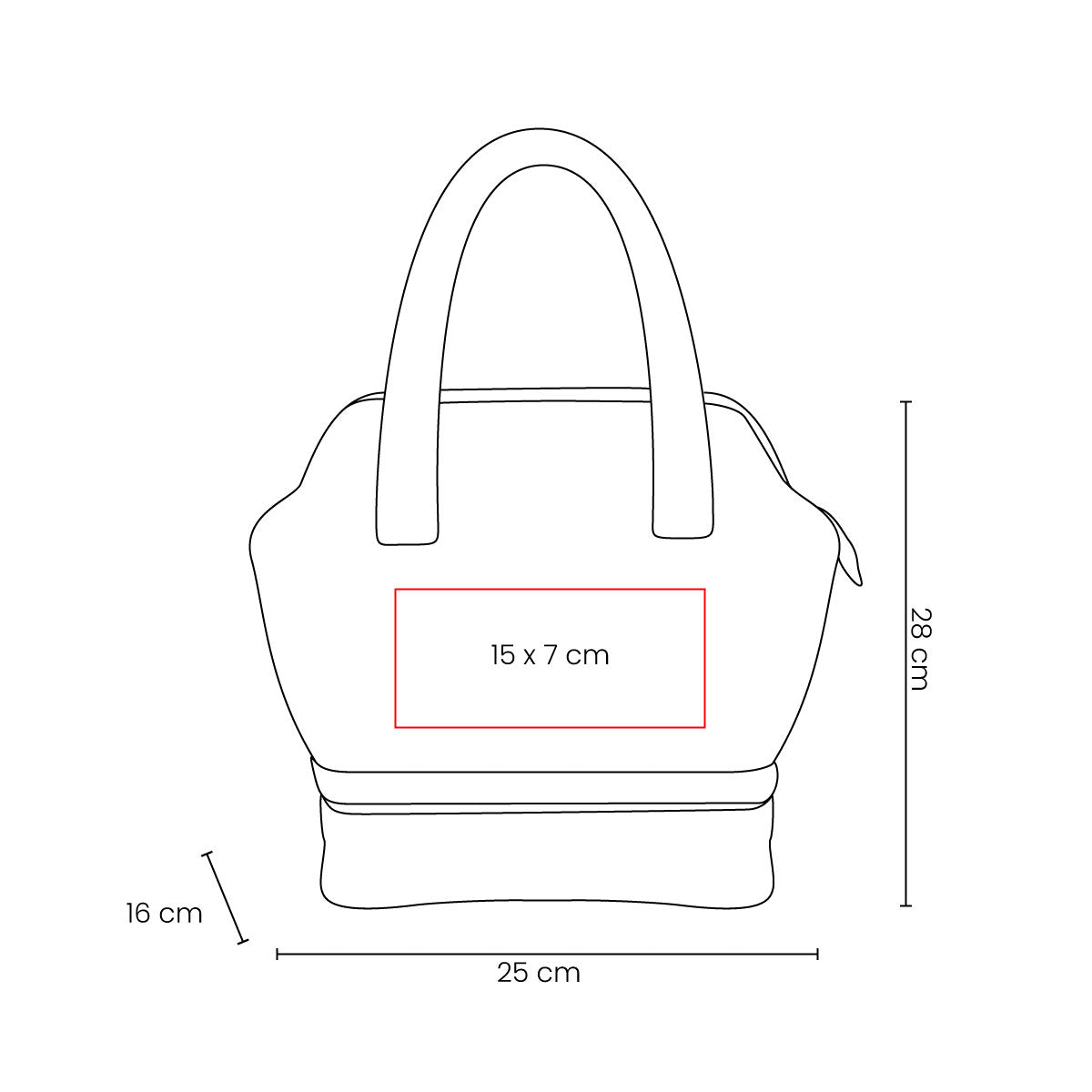 lonchera con interior plastificado y marco interno metálico que le da mayor soporte y estabilidad. compartimento inferior plastificado, ideal para almacenar cubiertos o alimentos compactos. cuenta con un asa de mano de tela para transportar facilmente. perfecta para mantener los alimentos organizados y frescos. capacidad 6 latas.
