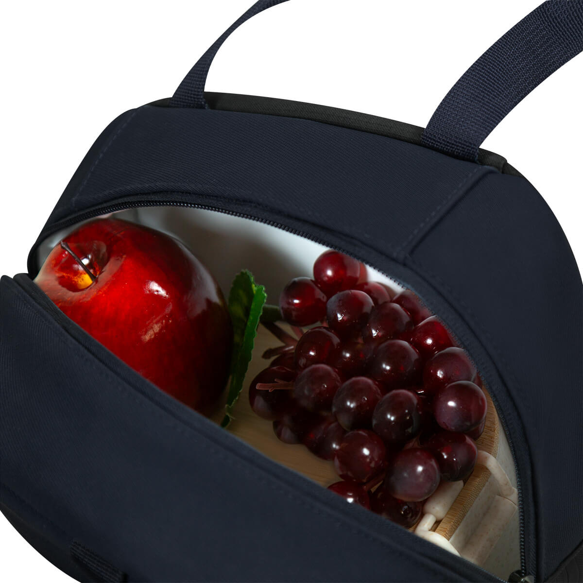 lonchera con un compartimento principal espacioso y una bolsa frontal adicional, ofrece amplio espacio para alimentos y snacks. los cierres con puller ergonómico y resistente facilitan su apertura y cierre, mientras que la base antiderrapante, proporciona estabilidad en superficies planas. sus asas de mano, brindan comodidad al transportarlas y los materiales resistentes aseguran su portabilidad a cualquier lugar.