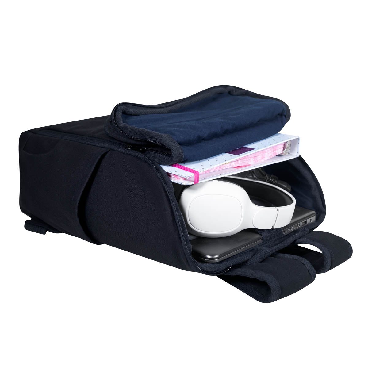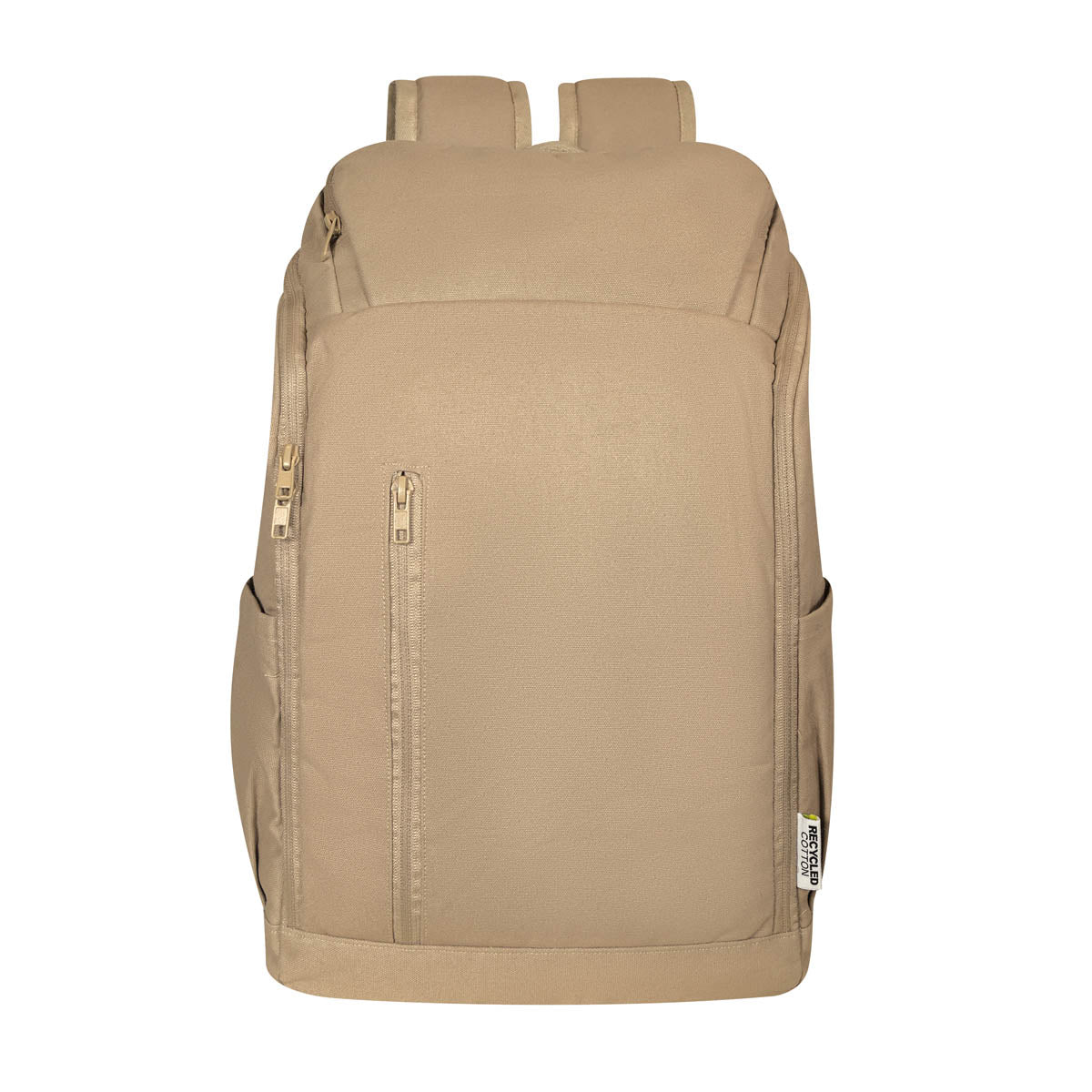 mochila ecológica de algodón reciclado, el balance perfecto entre sustentabilidad y funcionalidad, lo que la hace tu compañera perfecta para tu día a día. equipada con un compartimento acolchado para laptop hasta 15" en el bolsillo principal, un bolsillo frontal con cierre, un práctico bolsillo superior para objetos pequeños y dos bolsillos laterales para una organización impecable. además, su banda en la parte trasera te permite adaptarla fácilmente a tu trolley.