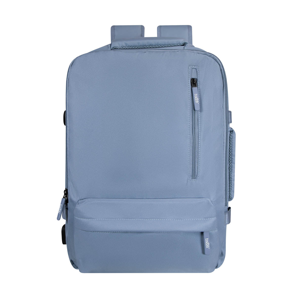 mochila con amplios espacios diseñados para todas tus pertenencias personales. esta mochila cuenta con un compartimento acolchado para laptop de hasta 16". su capacidad de almacenamiento se expande fácilmente para adaptarse a tus necesidades. equipada con una agarradera superior y lateral lo que te ofrece trasladarla de manera versátil. las asas acolchadas para llevar en la espalda garantizan comodidad durante todo el día, mientras que la conveniente salida usb te permite cargar tu dispositivo móvil sobre la marcha. además, la banda en la parte posterior facilita su transporte en trolley.