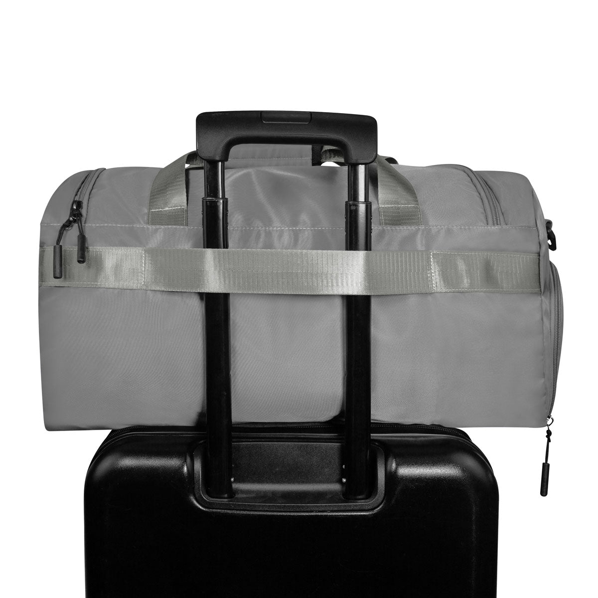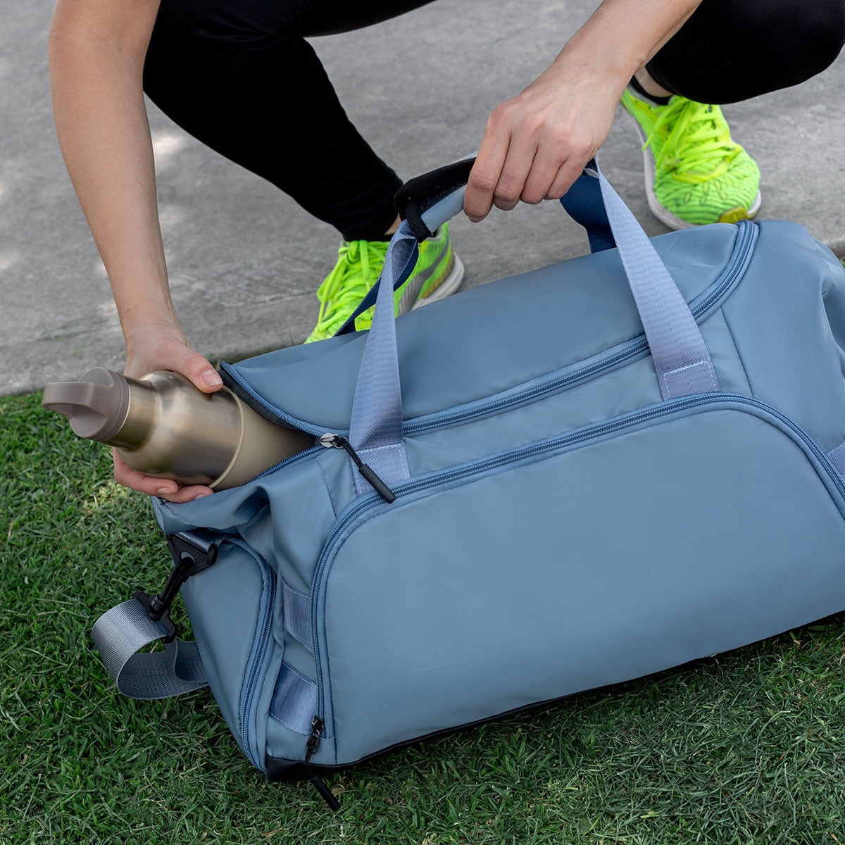 maleta deportiva con un bolsillo frontal amplio, que te permite organizar tus pertenencias de forma cómoda. su bolsillo lateral, ofrece un acceso rápido para artículos esenciales. además, la zapatera es ideal para mantener tu calzado separado y protegido. las asas superiores se ajustan a la altura deseada y el asa de mano, tiene un protector con broche de velcro para mayor comodidad. en su interior cuenta con un bolsillo impermeable. cuenta con banda para trolley