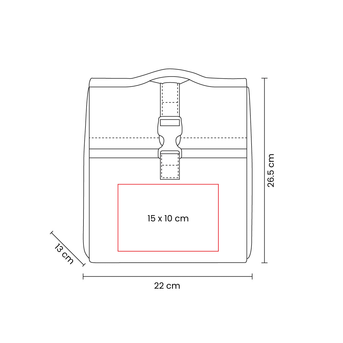 interior metalizado. bolsa principal con broche, solapa enrollable, asa superior. capacidad para 6 latas.