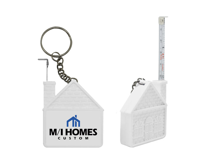 llavero de plástico en forma de casa con flexómetro de 1 m. de longitud.