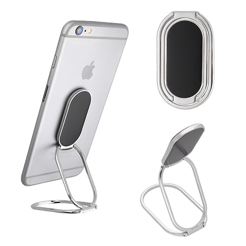 soporte para smartphone o tablet con diseño plegable de dos brazos, ideal para ajustar en diferentes posiciones.