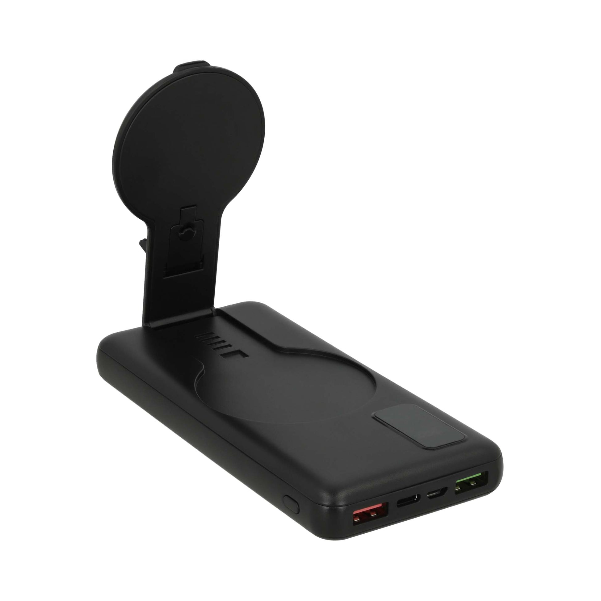 power bank wireless de 10,000 mah con soporte para celular plegable, 2 entradas usb, 1 v5 y 1 tipo c.