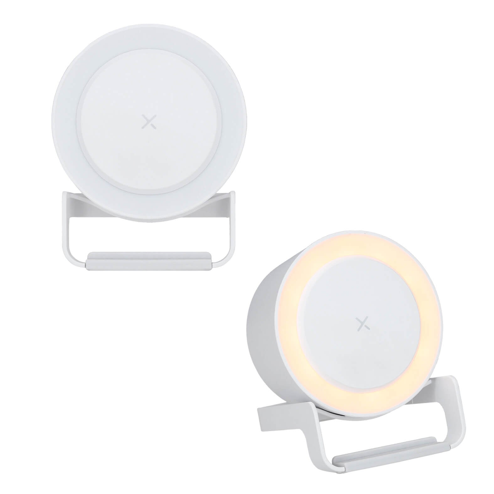 bocina inalámbrica con wireless charger y luz led con tres tipos de intensidad.