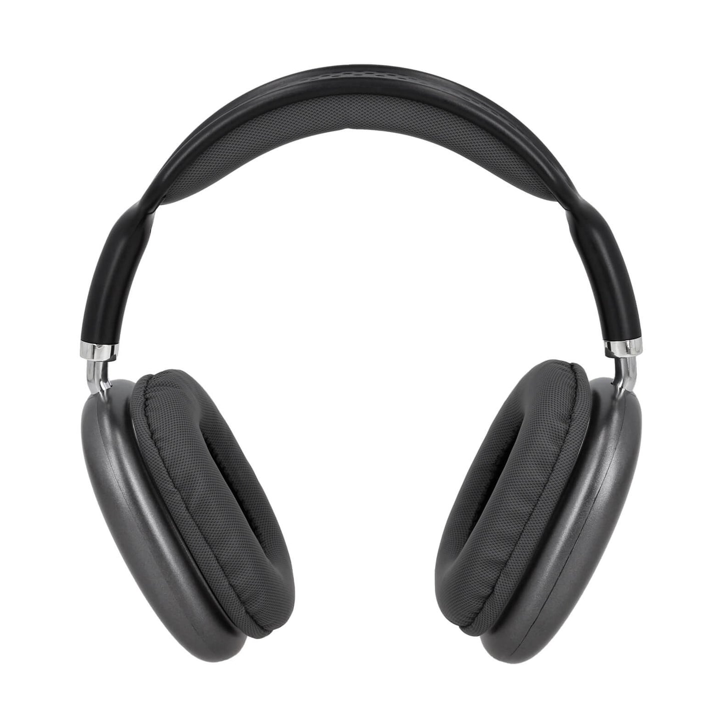 audífonos bluetooth de plástico con función de manos libres, controles de llamada, volumen, reproducción de audio, botón de encendido y apagado que cuenta con entrada para tarjeta de memoria micro sd y auxiliar. incluye cable de carga.