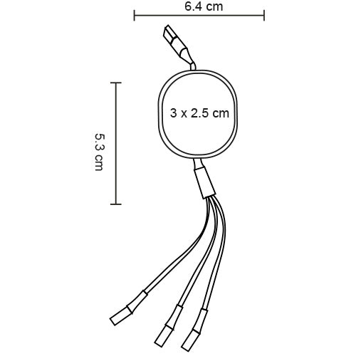 cargador multifuncional extensible ovalado (115 mts). cuenta con entrada usb y conectores de salida micro usb, tipo c y lightning.