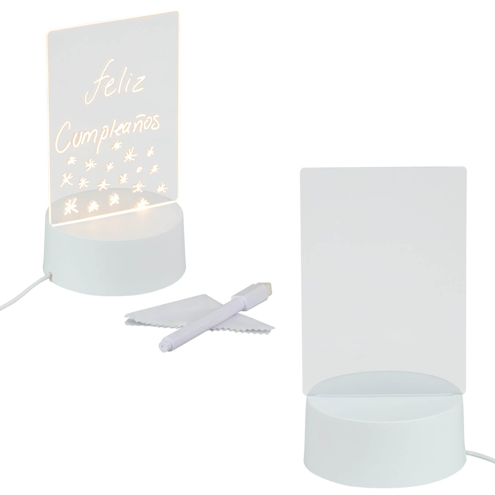 mini pizarrón de plástico luminoso con plumón y pañuelo limpiador.