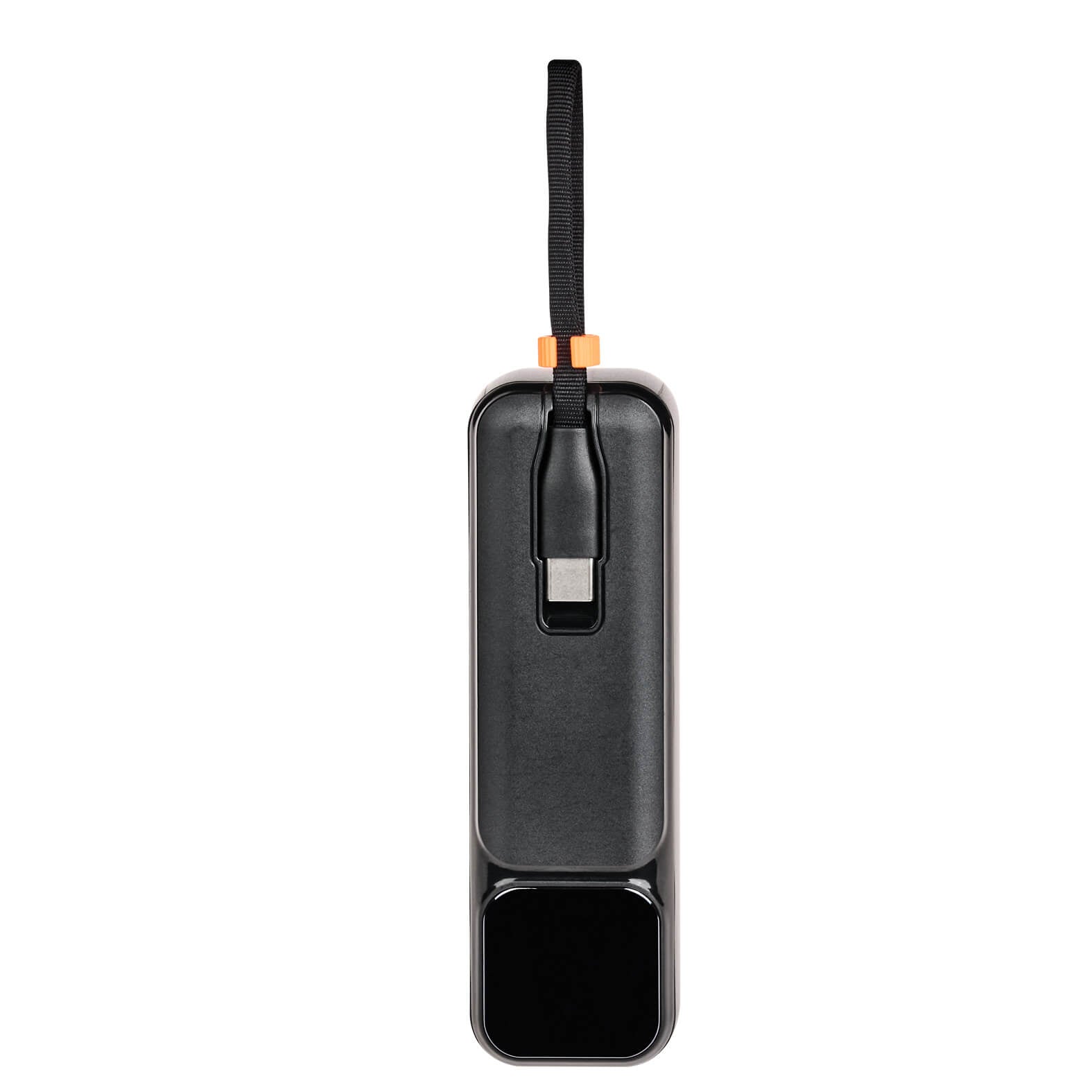 power bank de 5,000 mah con carga rápida, enchufe integrado, cable de carga tipo c e indicador de carga.