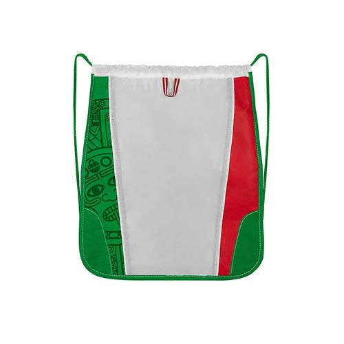 bolsa-mochila con diseño inspirado en méxico. tirantes de cordón y cerrado con jareta.