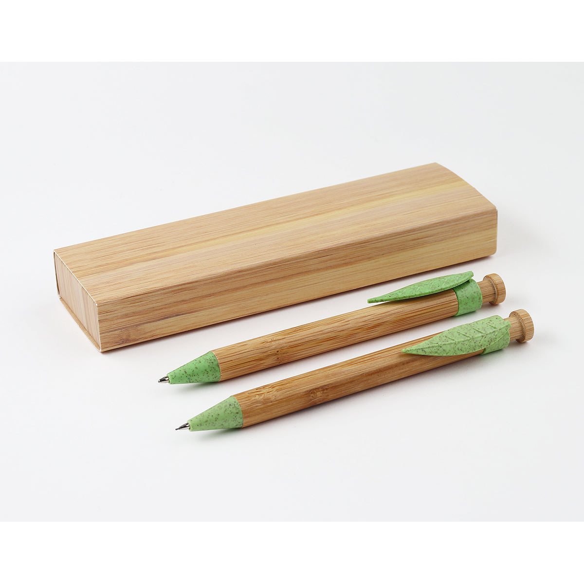 set de bolígrafo y lapicero fabricado en fibra de bambú y clip en fibra de trigo, tinta de escritura negra.