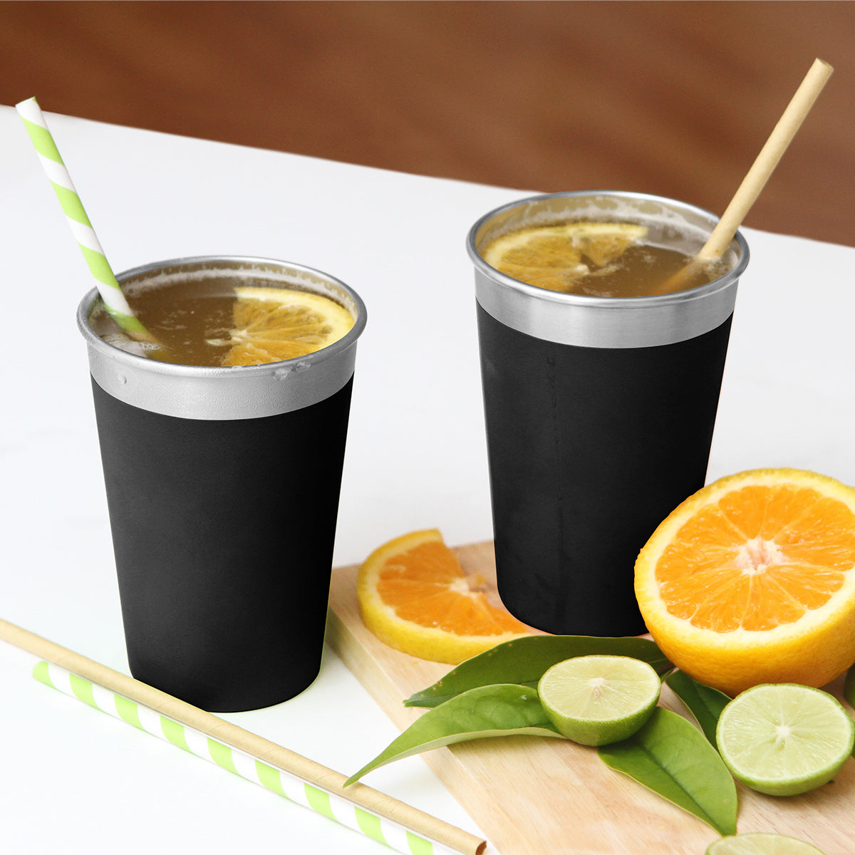 set de 4 vasos apilables de acero inoxidable de 80 gr; c, ideales para bebidas frías, no usar en microondas, capacidad 500 ml cada uno ( 16 oz ). incluye caja de cartón para cada set.