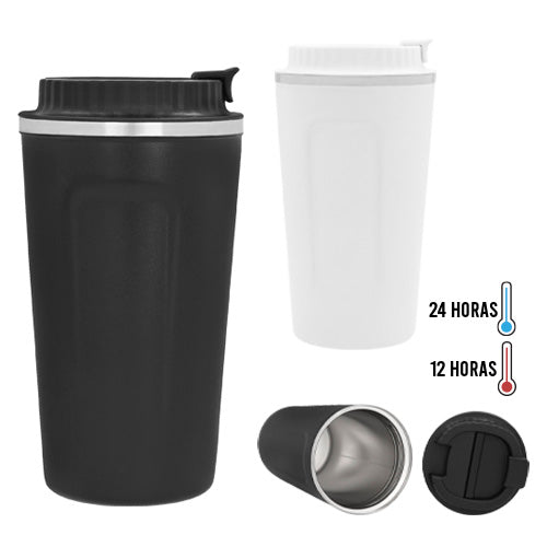 termo con doble pared de acero inoxidable, con tapa plástica enroscable y boquilla de seguridad.