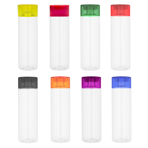 cilindro de plástico con tapa enroscable de color y cuerpo traslúcido. el envío de este material se hace por separado de base y tapas derivado a los cambios de altura si se traslada a otros lugares de la república. (el stock de la base se maneja por separado).