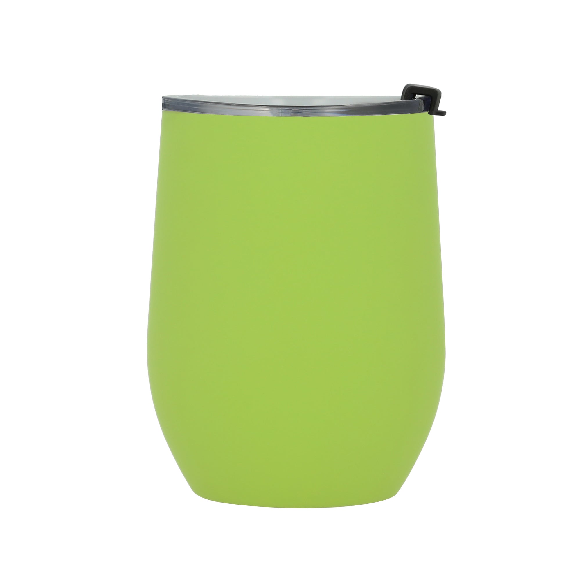 termo con doble pared de acero inoxidable y acabado rubber. incluye tapa transparente de cierre a presión.