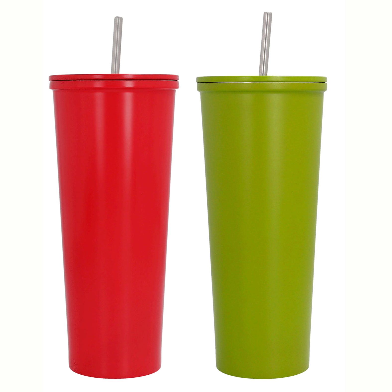 termo de acero inoxidable con doble pared insulado al vacío. incluye popote metálico.
