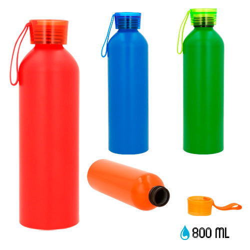 cilindro de acero inoxidable, con tapa de plástico traslúcida enroscable y correa de silicón.