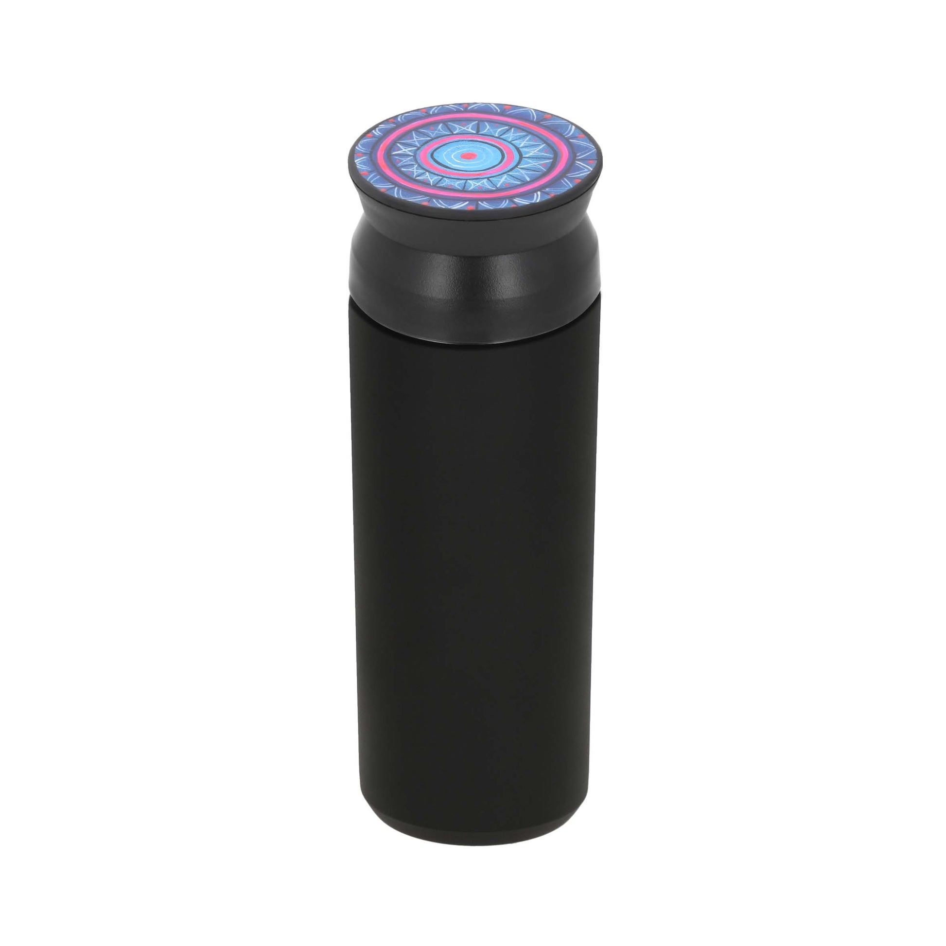 termo de acero inoxidable y doble pared insulado al vacío con acabado rugoso. edición alebrije.