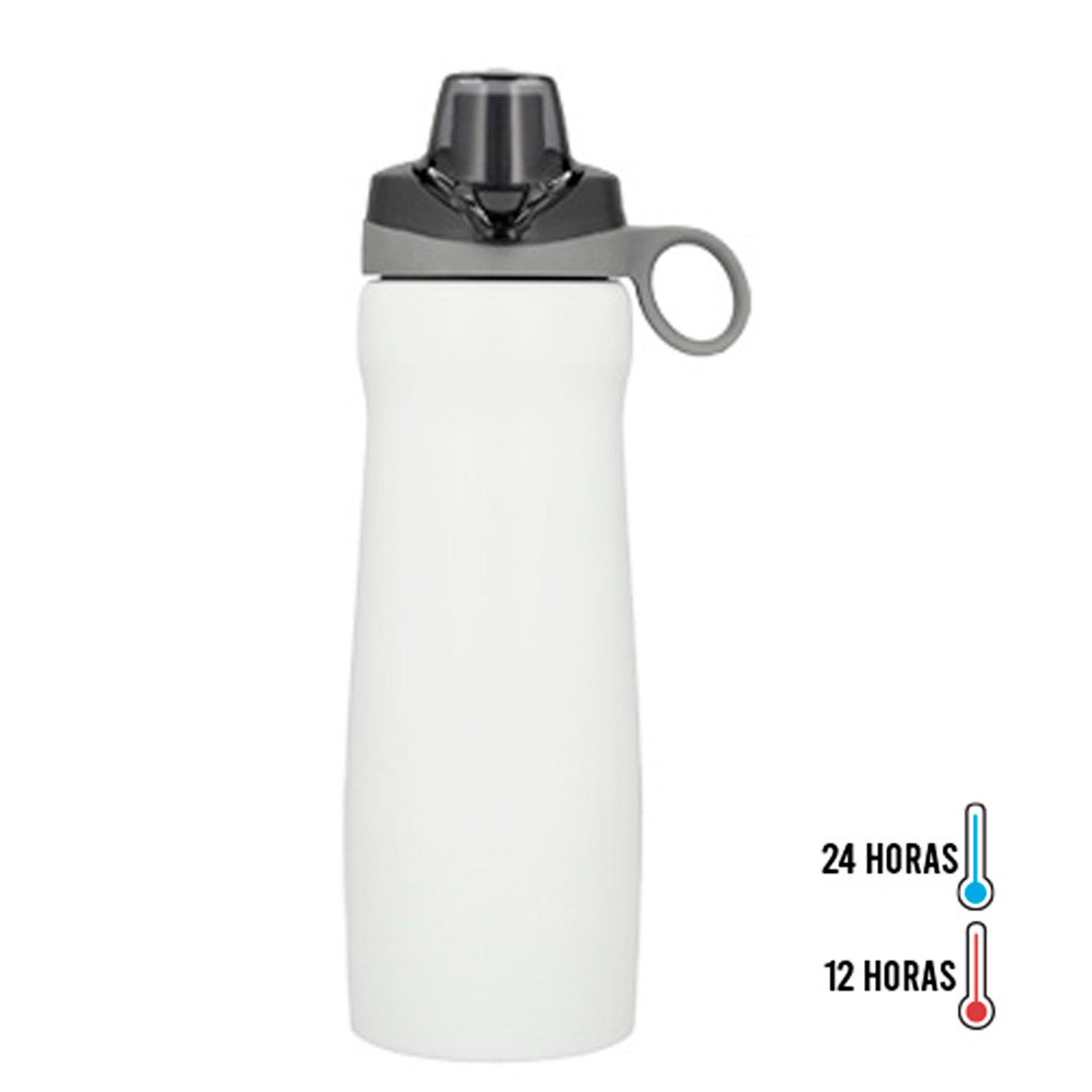 termo de acero inoxidable con doble pared insulado al vacío, su novedosa tapa cuenta con una agarradera lateral y boquilla con cierre de seguridad.