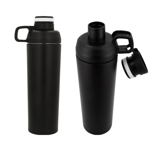 termo de acero inoxidable con doble pared insulado al vacío, su tapa cuenta con una agarradera lateral y boquilla enroscable de seguridad.