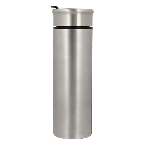 termo de doble pared con interior de plástico y tapa enroscable a presión.