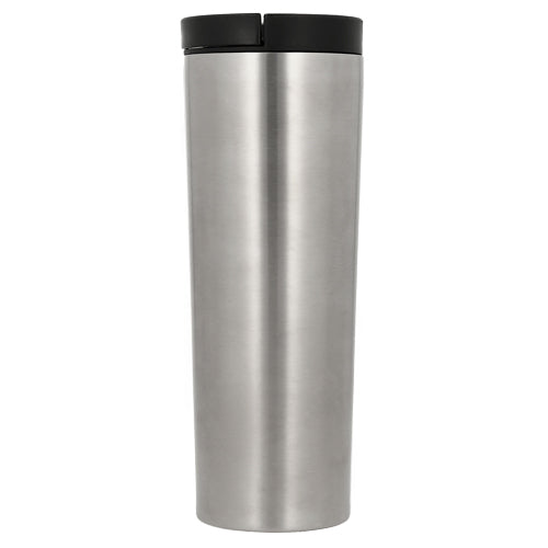 termo de acero inoxidable de doble pared insulado al vacío y tapa enroscable con mecanismo deslizable.