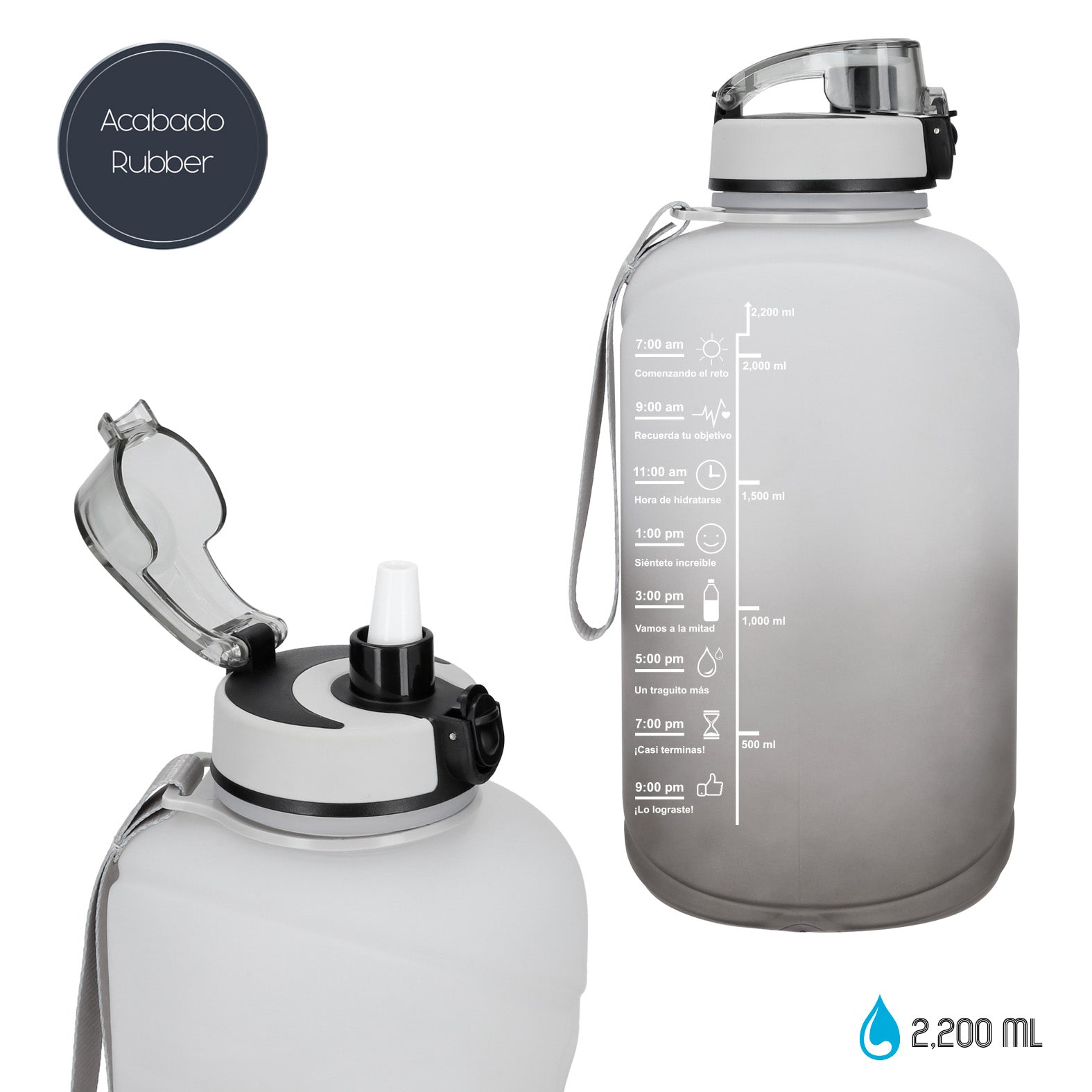 cilindro de plástico con acabado rubber, popote, tapa de seguridad y asa.