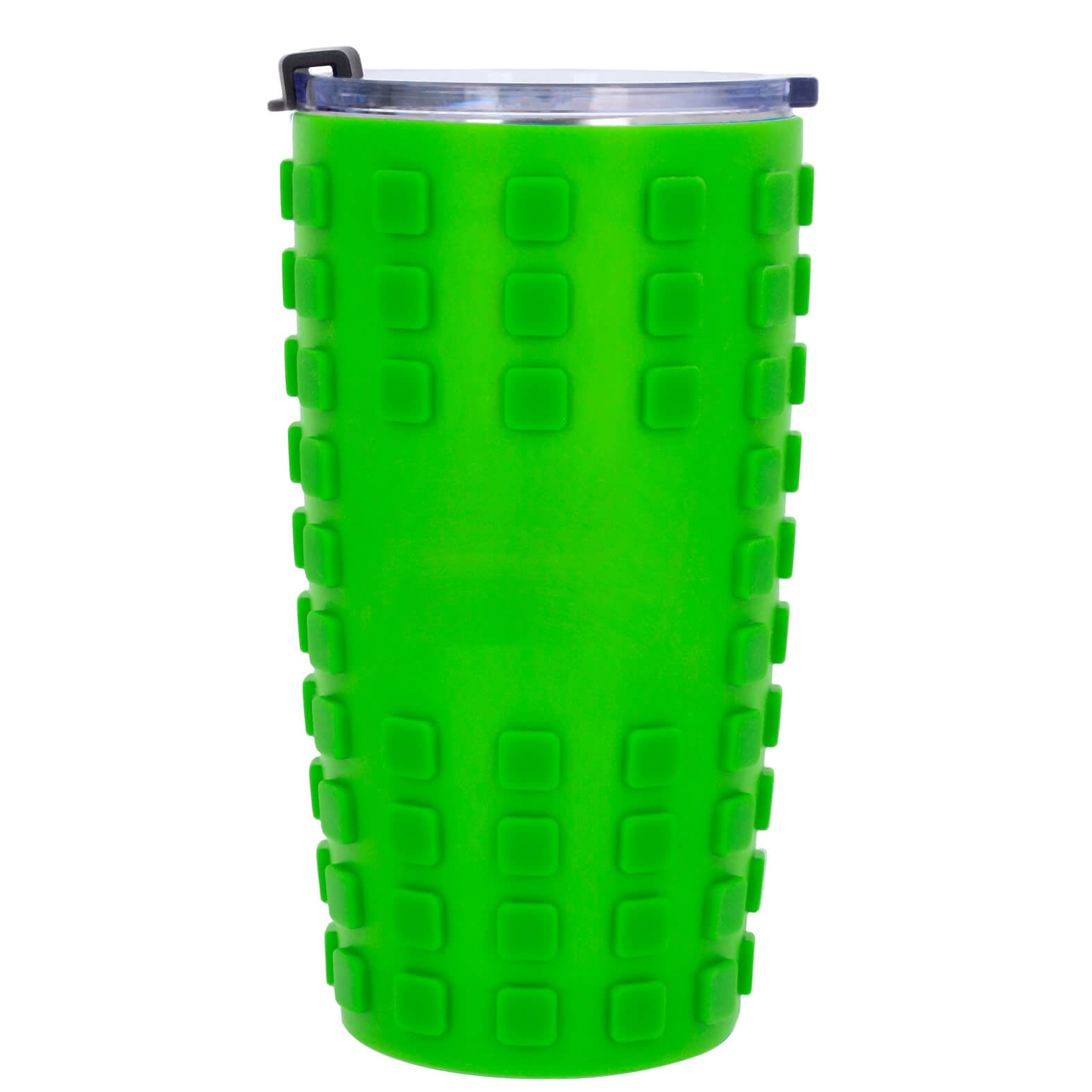 termo insulado al vacío con doble pared de acero inoxidable, recubierto en silicón y tapa de cierre a presión.