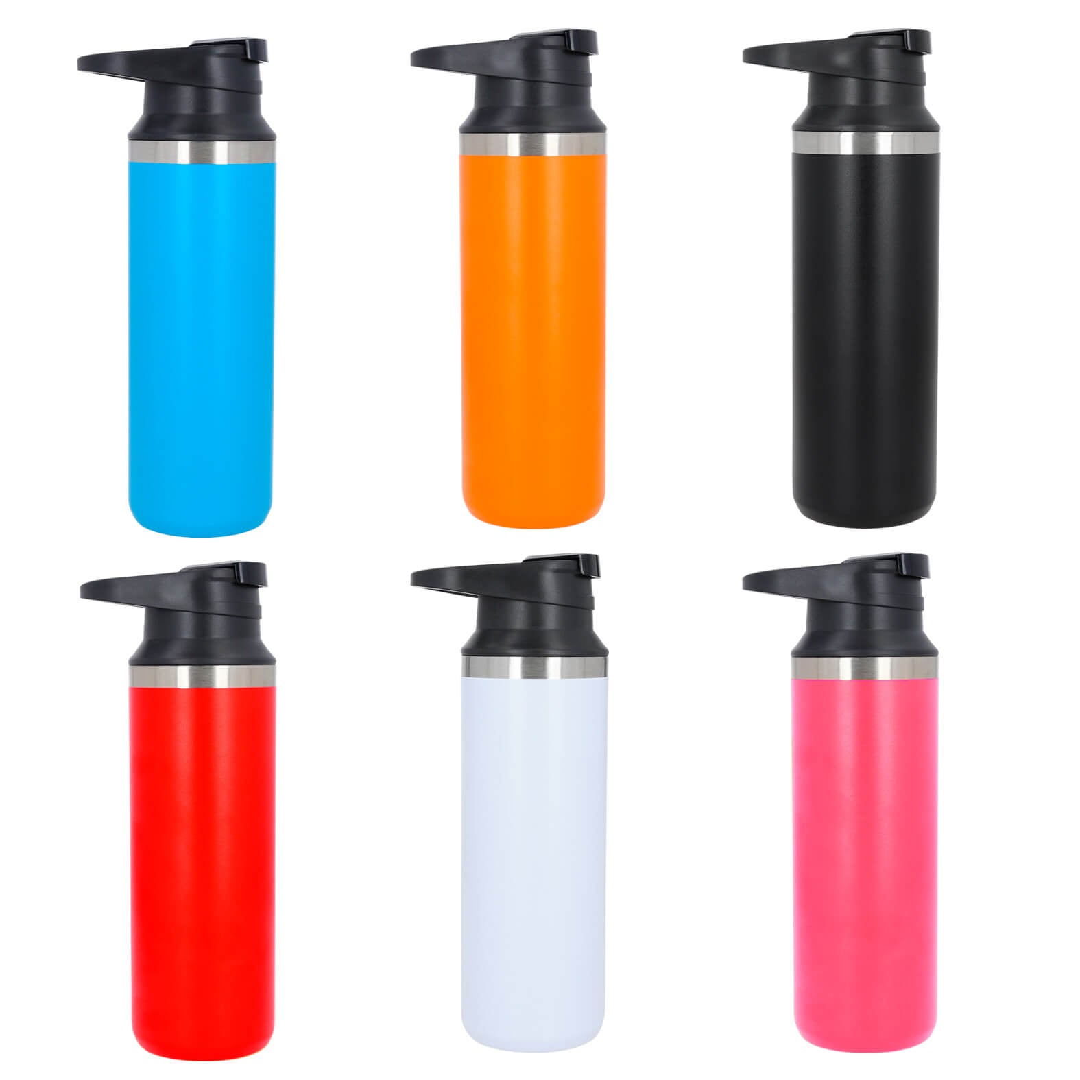 termo con doble pared de acero inoxidable, insulado al vacío y acabado rugoso. incluye tapa enroscable con boquilla de cierre a presión y asa.