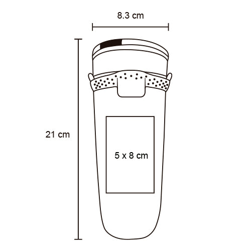 termo con doble pared de acero inoxidable, insulado al vacío, acabado rugoso, tapa de cierre a presión y banda elástica.