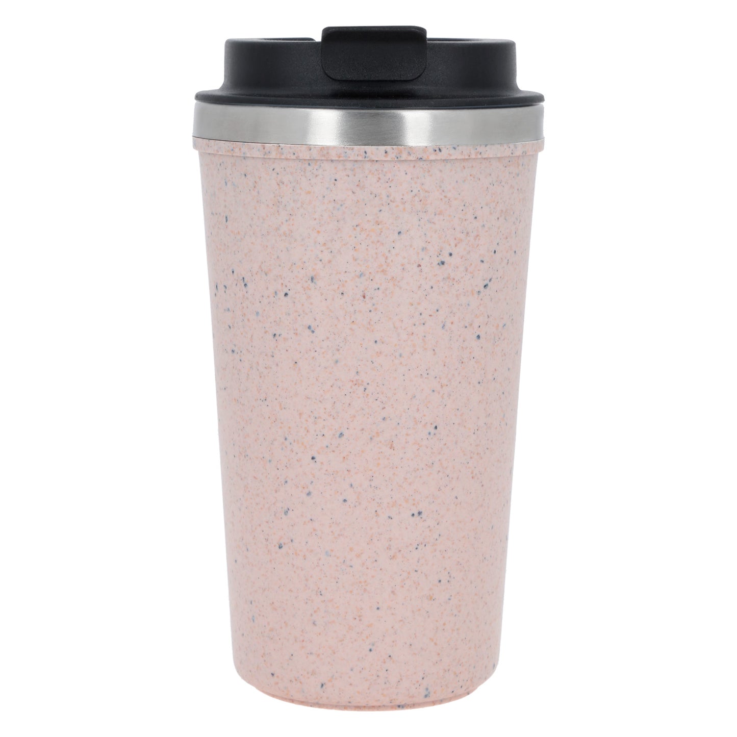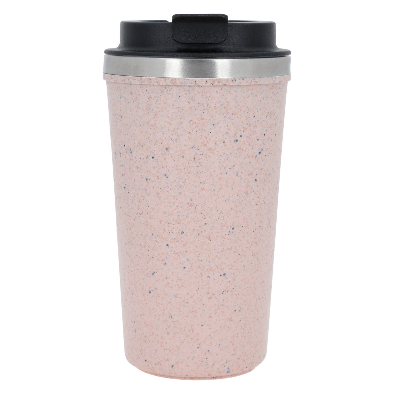 termo de doble pared de acero inoxidable y exterior de plástico elaborado a base de granos de café reciclado con tapa plástica enroscable. incluye en la parte inferior un chupón anti derrame.